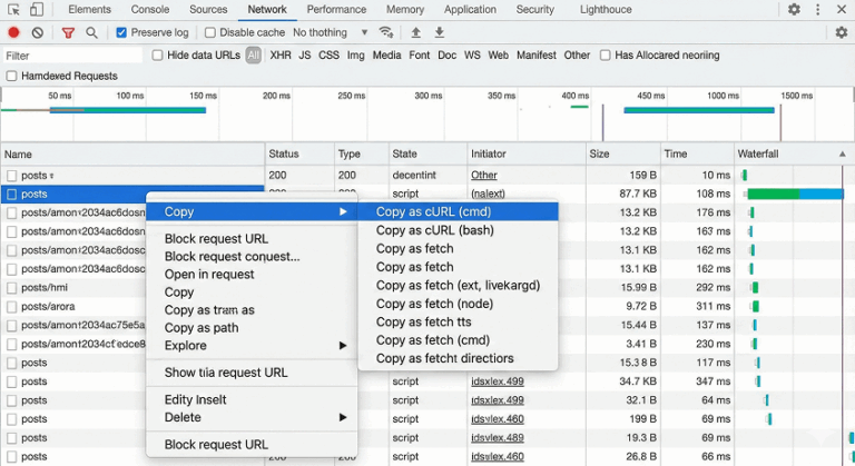 - 開発者ツールの「Network」タブを開きます。