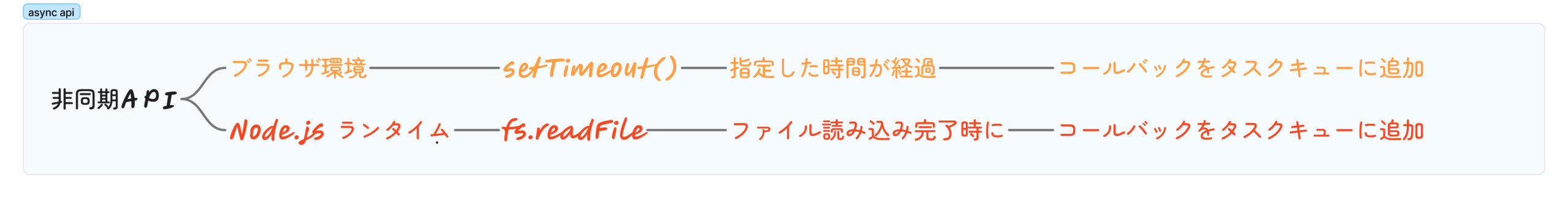 非同期APIとは、ブラウザやNode.jsといったJavaScriptランタイムが提供する、非同期的に結果を返す仕組みをもつ関数のことです。