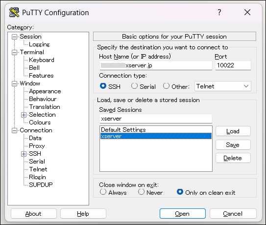 PuTTYでSSH接続設定